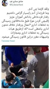 صادق ستاریفرد، سخنگوی آموزش و پرورش در واکنش به انتشار ویدئوی قیچی کردن موی دانش آموزان در یکی از مدارس با انتشار توییتی عنوان کرد: رفتار فرد خاطی بادانش آموزان مطابق ماده ۸ قانون رسیدگی به تخلفات اداری «اعمال و رفتار خلاف شئون اداری یا شغلی است» که از طریق هیات رسیدگی به تخلفات اداری و مطابق مجازات و تنبیهات مقرر در قانون مذکور بررسی و پیگیری میشود.